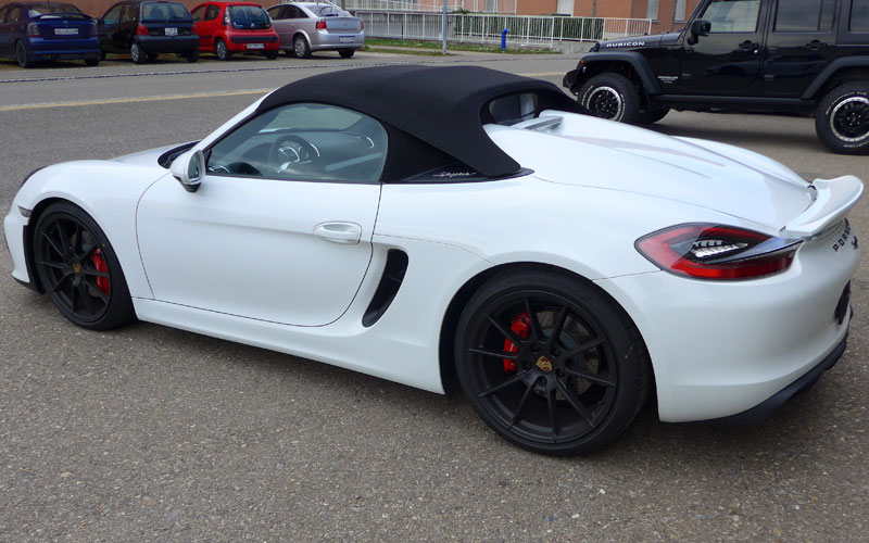 Porsche baut diese ultimative Fahrmaschine noch bis Ende April 2016. Die gesamte Produktion ist bereits ausverkauft. Dieser Spyder ist einer der letzten Boxster mit einem Sechszylinder Motor. Ab der nächsten Baureihe werden, fevelhafterweise, nur noch Viezylinder-Turbo-Motoren verbaut. Beim Spyder ist jedoch nicht die Boxster Maschine, sondern das Aggregat aus dem Carrera 991 verbaut. 375 PS, absoluter Leichtbau sorgen dafür dass mit diesem Fahrzeug mit Leichtigkeit jeder GT 3 in Bedrängnis gebracht werden kann. Wegen der geringen Produktionszahlen wird sich dieses Fahrzeug auf der Wertskala nur noch nach Oben bewegen